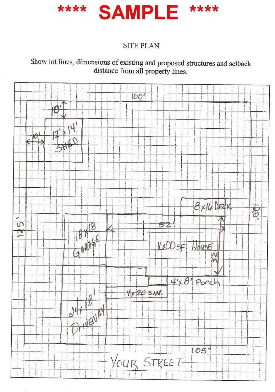 - Actual shape and dimensions of the lot for which a permit is sought