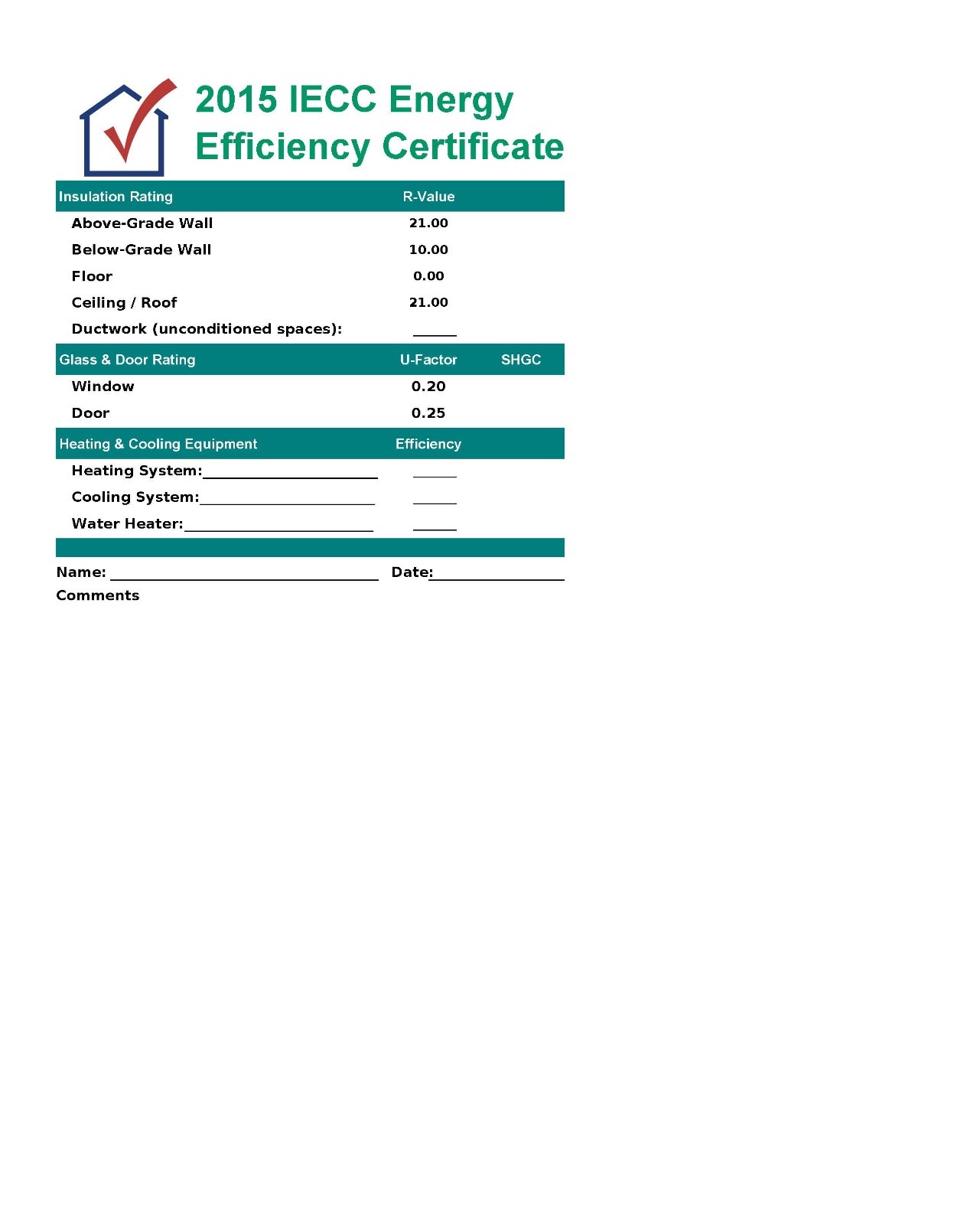 - Fenestration U-factors and solar heat gain coefficients (SHGC)